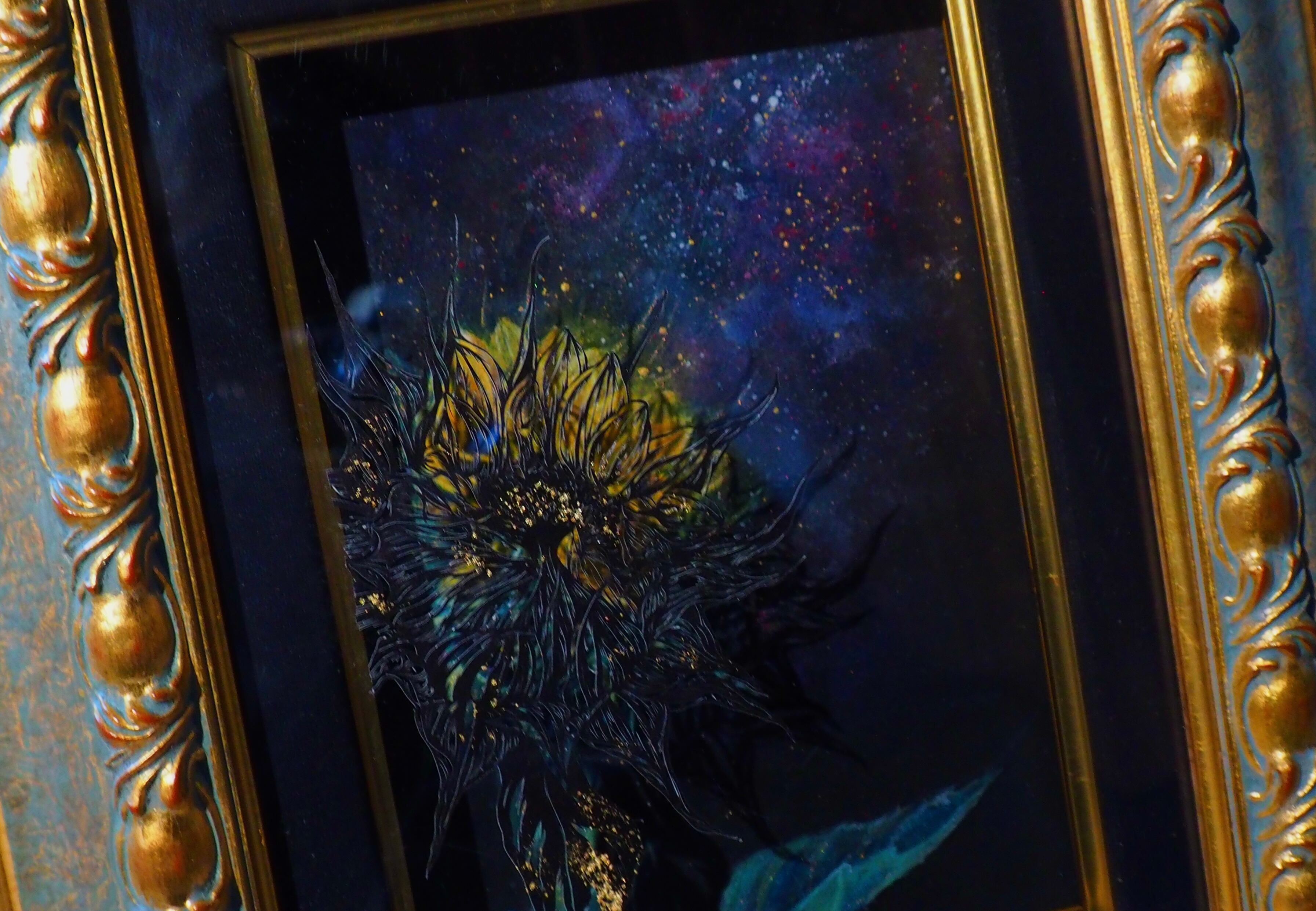 朝が来るのをじっと待つひまわりの蕾をモチーフにした作品です。